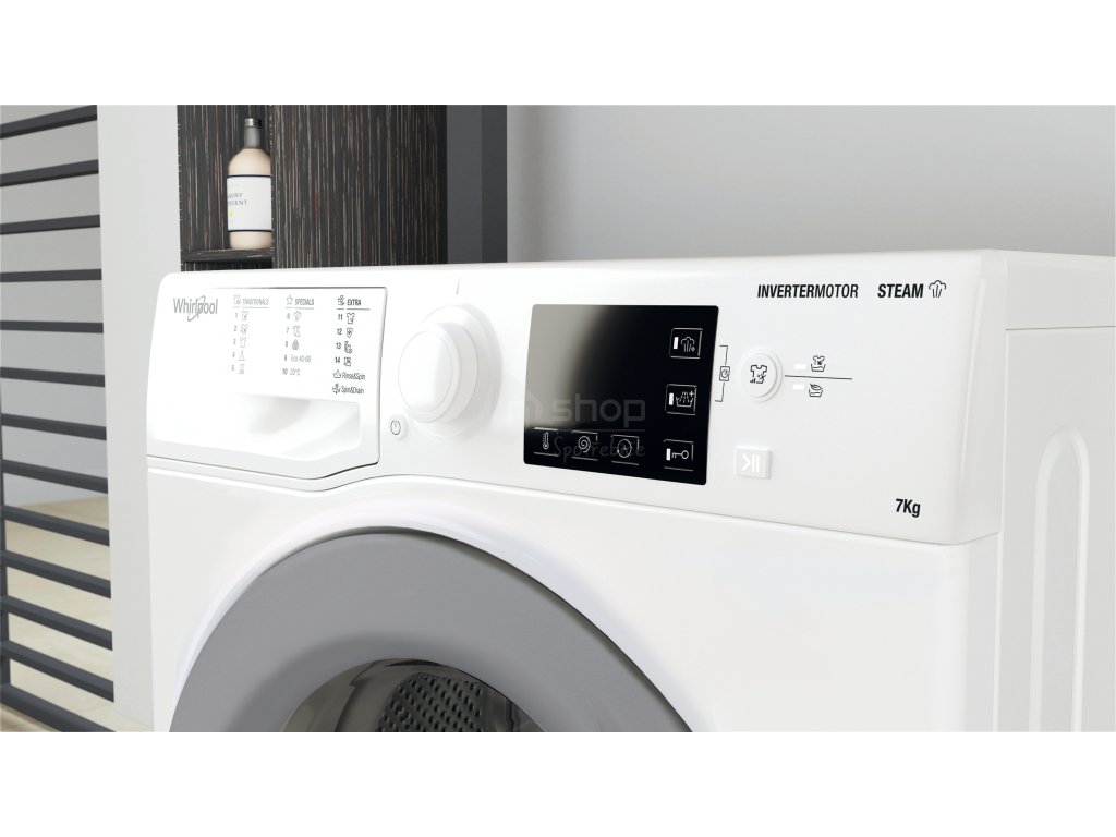 Přednosti této volně stojící pračky Whirlpool: bílá barva. Prostorná kapacita 7,0 kg. Energetická třída B. Rychlé, úsporné: 1200 ot./min. odstřeďování. Exkluzivní technologie 6. SMYSL, která dynamicky přizpůsobuje nastavení každé konkrétní náplni a zajišťuje ideální péči o všechny vaše tkaniny.