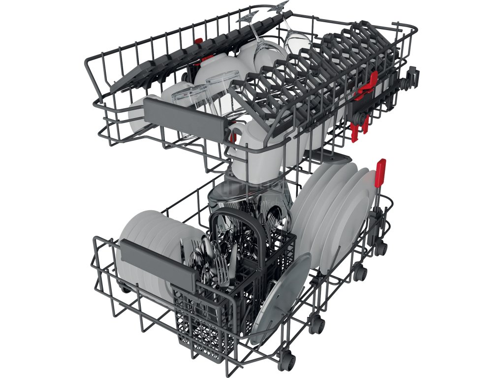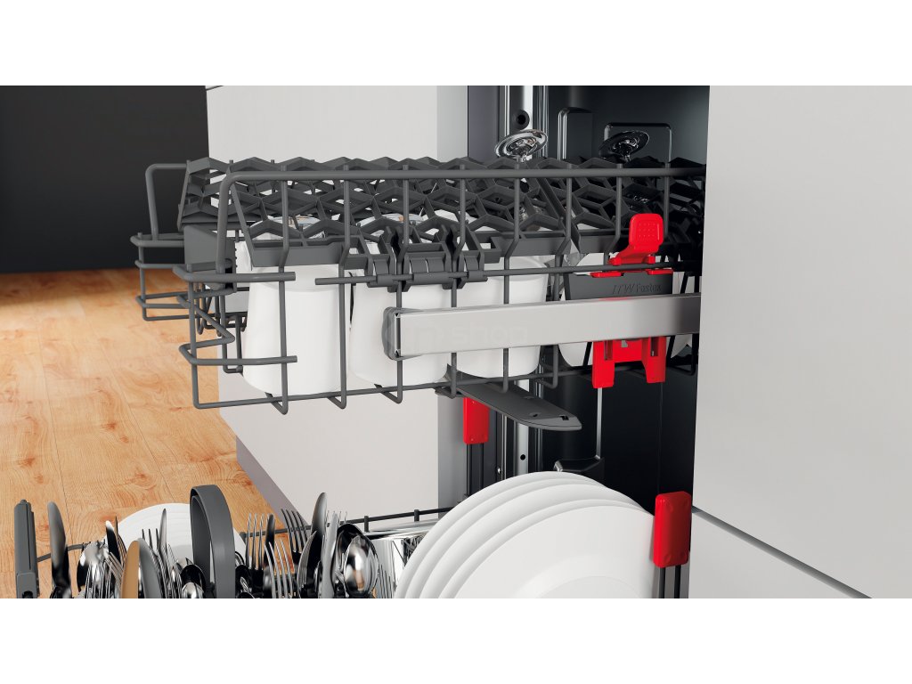 Nastavitelný horní koš vaší myčky nádobí vám umožní v případě potřeby vytvořit větší prostor a také bez námahy umístit neobvykle tvarované předměty.