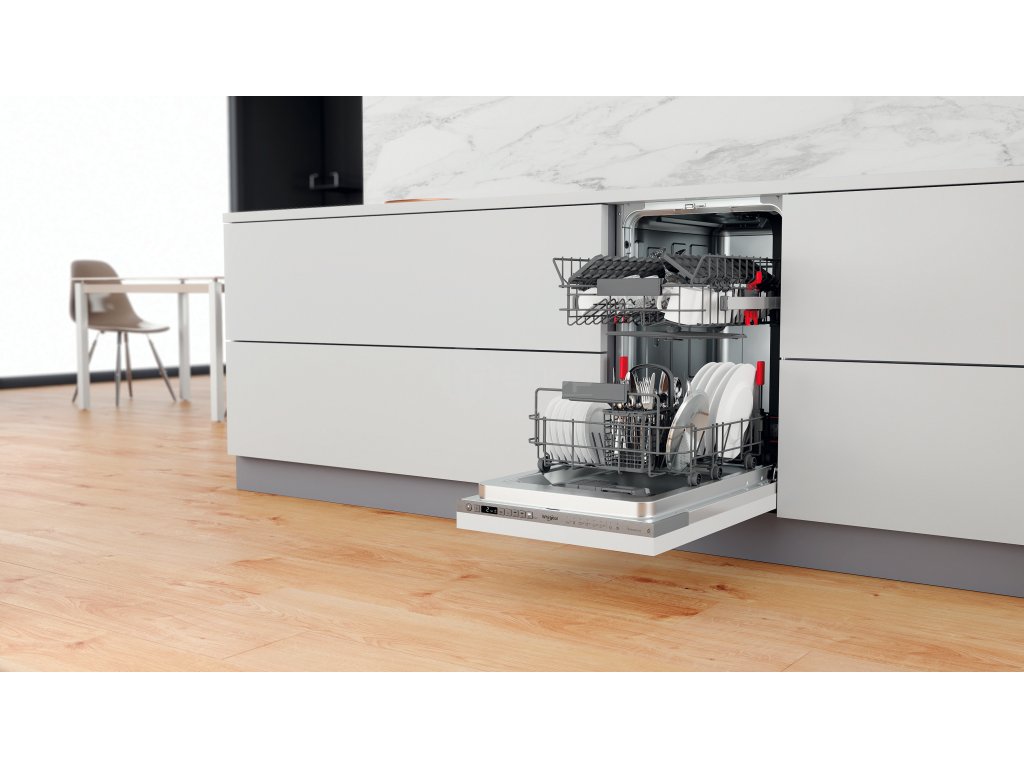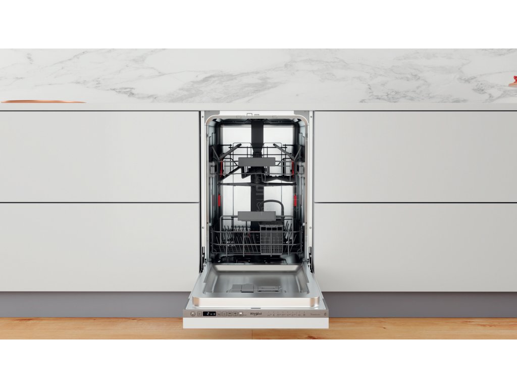 Přednosti této plně integrované vestavné myčky nádobí Whirlpool: nerezová barva. Nastavitelné nožičky, pro dokonalou stabilitu na nerovných podlahách a površích. Vynikající mycí výkon pro ideální výsledky mytí. Vynikající výkon sušení pro vynikající výsledky. Možnost volby cyklu mytí v horním nebo dolním jednom koši, takže si můžete vychutnat čisté nádobí, aniž byste museli čekat na naplnění spotřebiče.